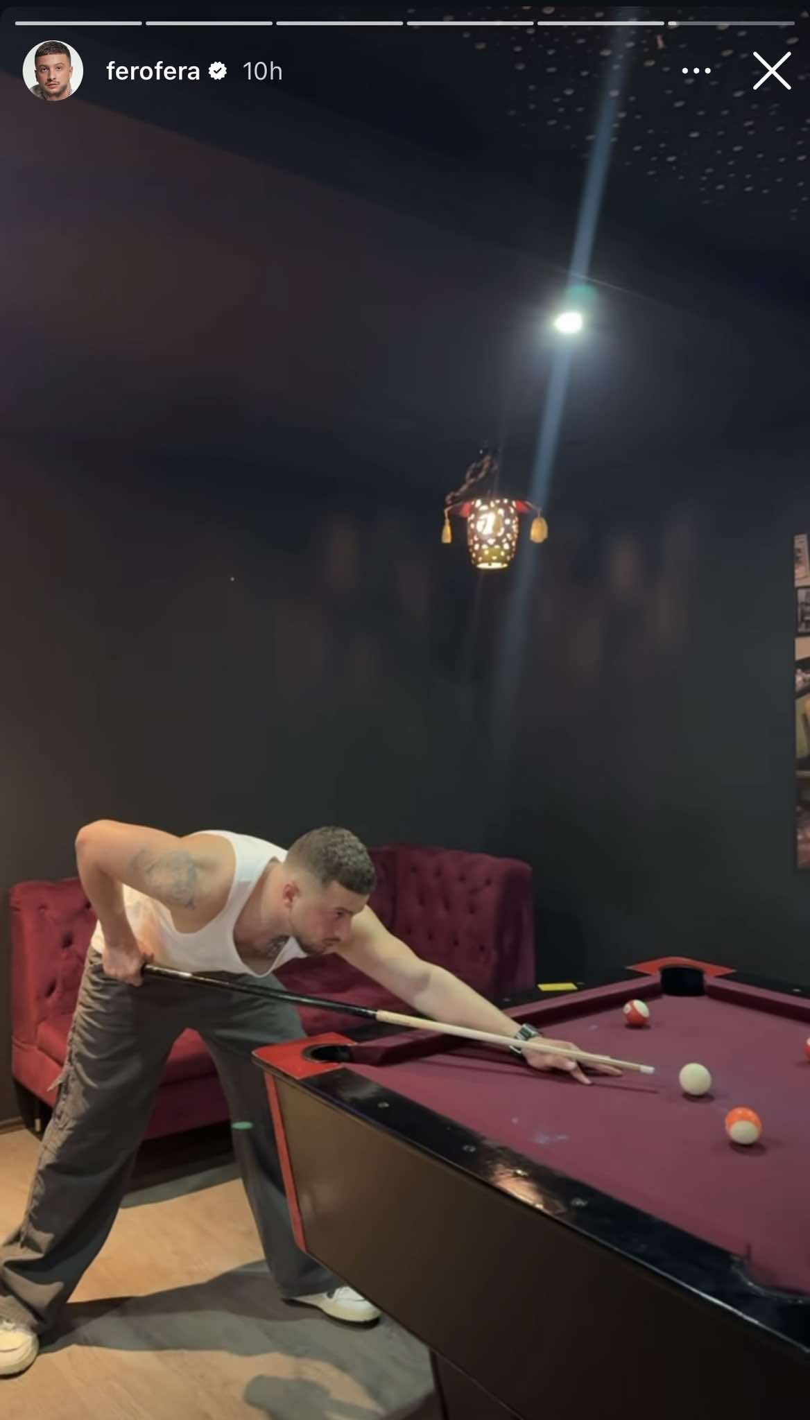 Në një story të publikuar në Instagram, ai shihet duke luajtur bilardo, që duket se e ndihmon të çlirohet pas orëve të gjata në studio.