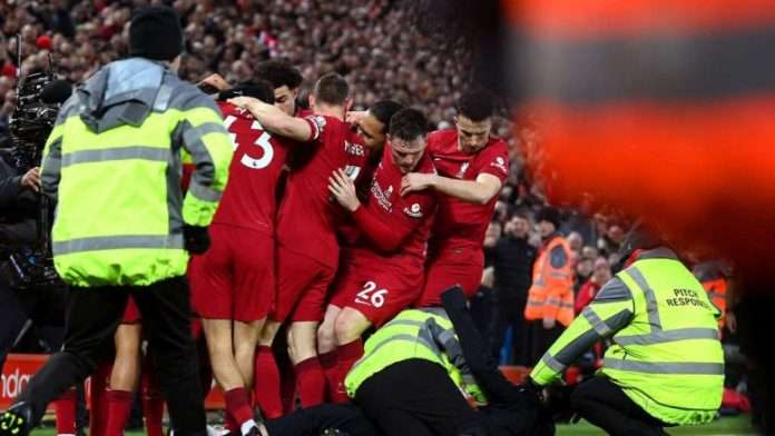 Gjegjësisht, një tifoz vendas vrapoi në fushë për të përqafuar lojtarët që po festonin golin e shtatë të shënuar nga Roberto Firmino në minutën e 88-të.