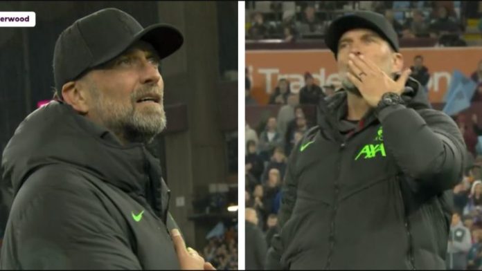 Klopp shkoi në seksionin e mysafirëve për të falënderuar tifozët dhe dukej emocional teksa u përkul dhe puthte duart në drejtim të tyre.
