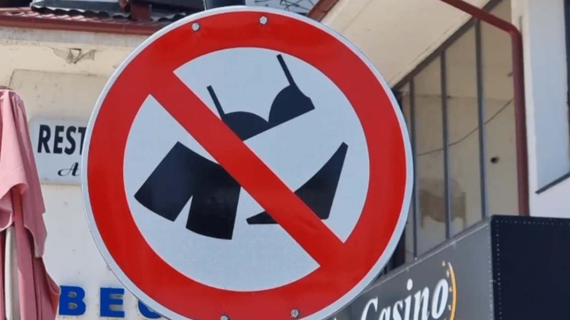 Jo me rroba banje në qytet. Komuna e Strugës kërkon që të respektohet rendi publik dhe të mos të dilet nëpër qytet me bikini. Për këtë komuna e cila drejtohet nga kryetari Ramiz Merko vendosi edhe shenja ndalese në rrugë, ndërsa për ta ndaluar lakuriqësinë dolën me një shkrim në faqen zyrtare në facebook.