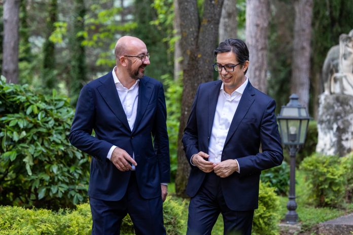 Kryetari i Këshillit Evropian, Charles Michel në konferencën e përbashkët me presidentin Stevo Pendarovski tha se bisedimet për aderim në BE të Shqipërisë dhe Maqedonisë së Veriut duhet të nisin sa më parë, përcjell TV21. Michel tha se është i bindur se së shpejti do të ketë zhvillime pozitive në zgjidhjen e kontestit bilateral mes Shkupit dhe Sofjes.