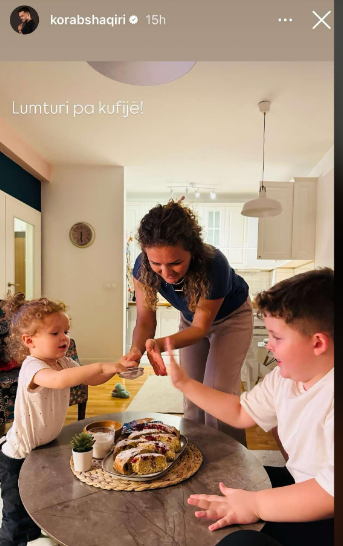 Korabi së fundmi ndau një postim ku shihen fëmijët dhe bashkëshortja e tij derisa po bëjnë gati një ëmbëlsirë.