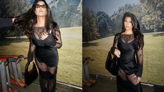 Fustani, me elementë transparentë dhe prerje të sofistikuar, krijoi një pamje delikate por sensuale, ndërsa Kourtney pozonte me vetëbesim dhe hijeshi përpara kamerës.