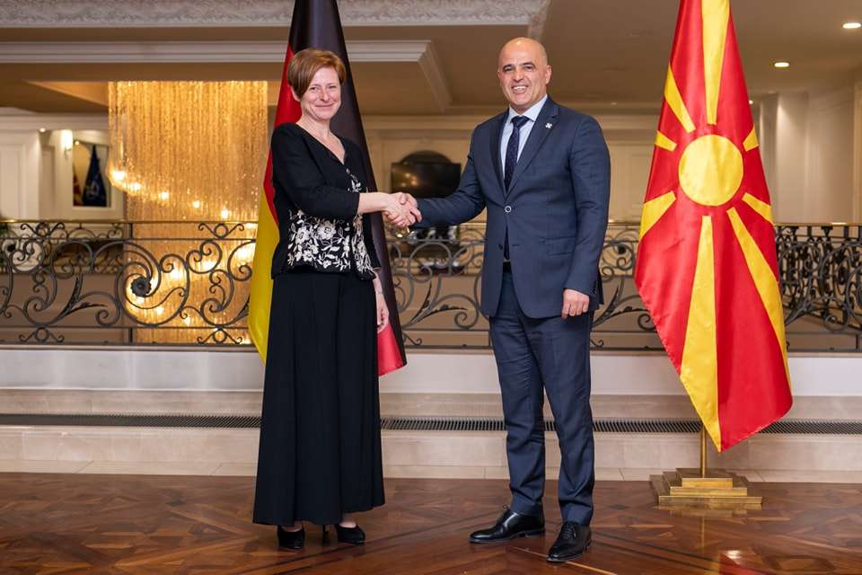 Kryeministri Kovaçevski e priti ambasadoren e re gjermane Drexler dhe të dyja palët shprehën vendosmërinë për zhvillimin e mëtejshëm aktiv mes Maqedonisë dhe Gjermanisë i cili ka qenë i fuqishëm për shumë vite.