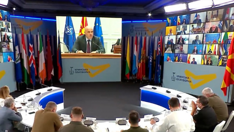 Kryetari i Qeverisë së Republikës së Maqedonisë së Veriut, Dimitar Kovaçevski, mbajti fjalim në Samitin e Platformës Ndërkombëtare për Krimenë, para presidentit të Ukrainës, Volodymyr Zelensky, kryeministrit të Ukrainës, Denis Shmigal, dhe përfaqësuesve nga Krimea si dhe liderë të vendeve anëtare të NATO-s dhe BE-së, përfshirë dhe figurat më të larta të Unionit.