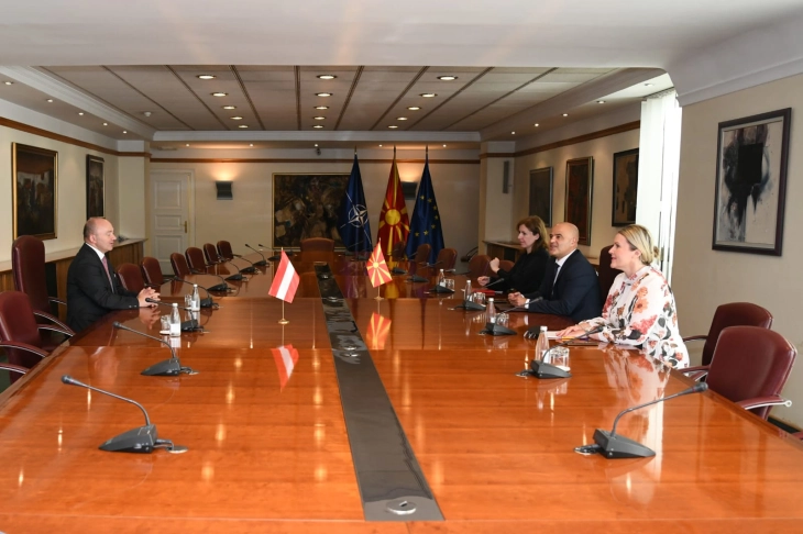 Kryeministri Dimitar Kovaçevski realizoi takim me ambasadorin e ri austriak, Martin Pamer ku u bisedua për marrëdhëniet bilaterale, por edhe për çështjet aktuale me rëndësi për perspektivën e shtetit.