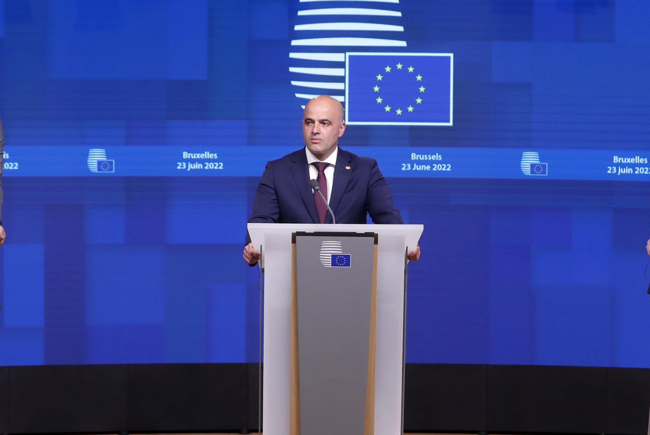 Kryeministri i Maqedonisë së Veriut Dimitar Kovaçevski, sot në Bruksel, para mbajtjes së Konferencës së Parë Ndërqeveritare me Bashkimin Evropian, në konferencë për shtyp tha se pret që RMV të jetë shembull për integrim të shpejtë në BE.