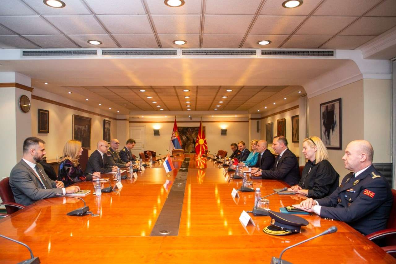 Kryetari i Qeverisë së Republikës së Maqedonisë së Veriut, Dimitar Kovaçevski, i shoqëruar nga ministrja e Mbrojtjes, Sllavjanka Petrovska dhe ministri i Punëve të Brendshme, Oliver Spasovski, sot u takua me nënkryetarin e Qeverisë së Republikës së Serbisë, Millosh Vuçeviq.