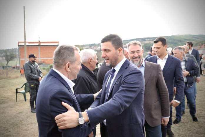 Krasniqi ishte i shoqëruar nga zyrtarë të PDK-së dhe nga i biri i ish-presidentit Hashim Thaçi, Endriti.