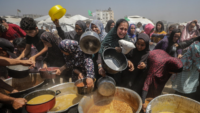Qindra njerëz, duke përfshirë gra dhe fëmijë, kanë pritur me orë të tëra për të marrë ushqim.