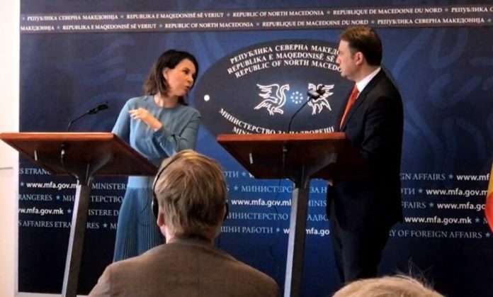 -Nëse nuk doni që të gjithë të rinjtë të shkojnë në Evropë, atëherë duhet ta sillni Evropën këtu dhe kjo mund të bëhet me anëtarësimin në BE, këtë e tha sot ministrja e Punëve të Jashtme e Gjermanisë, Annalena Baerbock në Shkup, përcjell TV21. Ajo tha se personalisht ka respektin dhe mirënjohjen për kompromiset që ka bërë Maqedonia e Veriut për të trasuar rrugën për anëtarësim në BE.