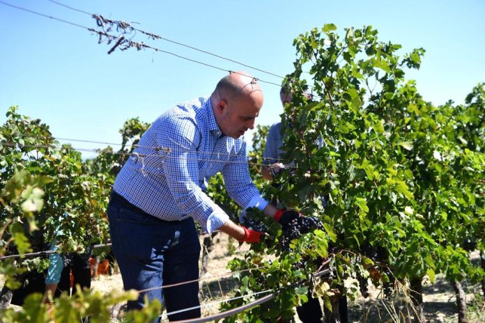 Kryeministri Kovaçevski vë dorezat, merr pjesë në vjeljen e rrushit