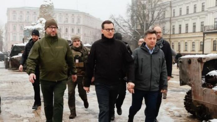 Mateusz Morawiecki, kryeministri i Polonisë, arriti në Kiev këtë mëngjes për të përkujtuar viktimat e një zie buke të epokës sovjetike që vrau miliona ukrainas në vitet 1930.