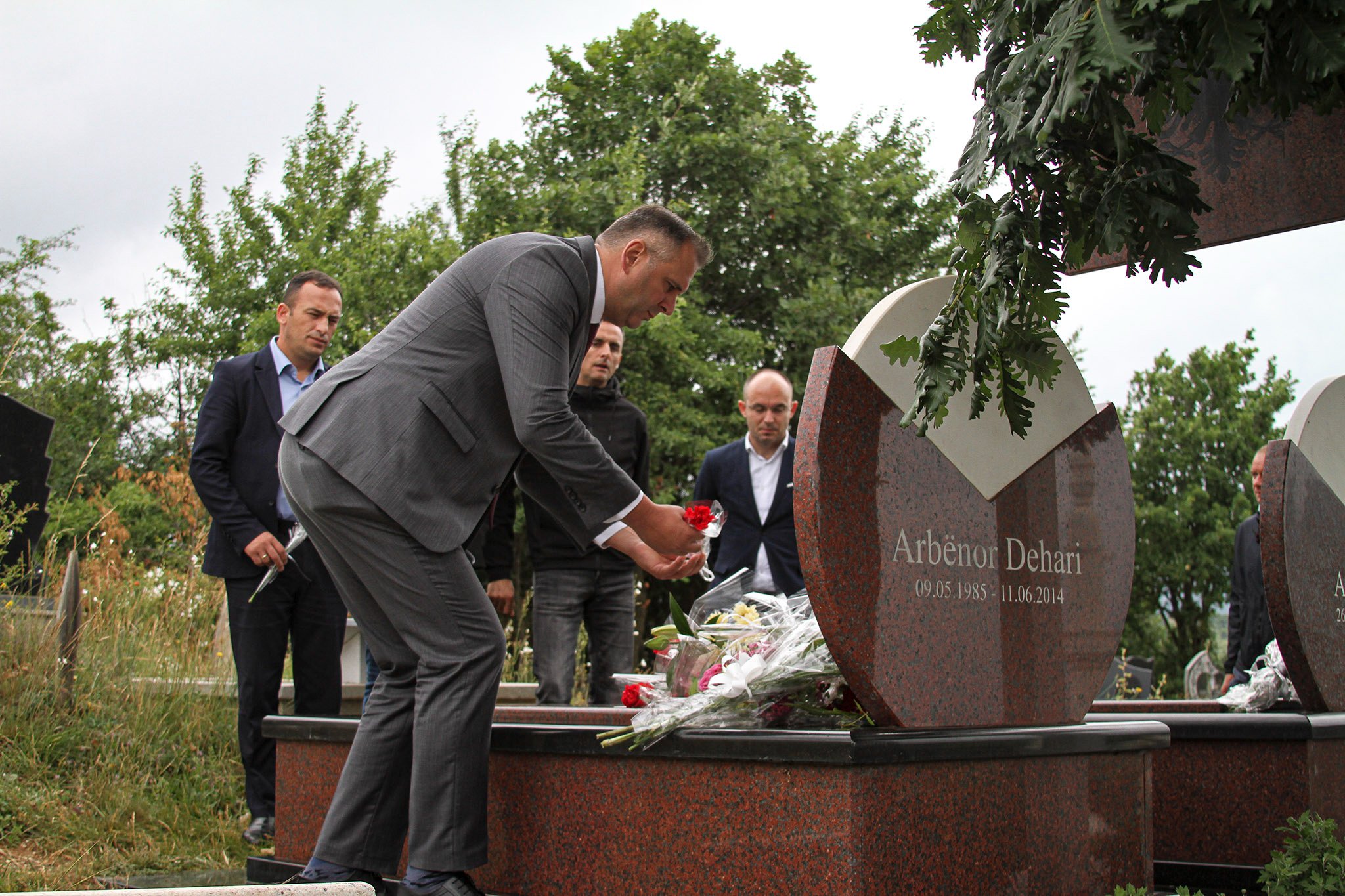Kryeministri Albin Kurti, bashkë me ministra e deputetë nga radhët e Lëvizjes Vetëvendosje, kanë bërë sot homazhe tek varri i ish-aktivistit të LVV-së, Arbënor Dehari, me rastin e përvjetorit të vdekjes së tij.