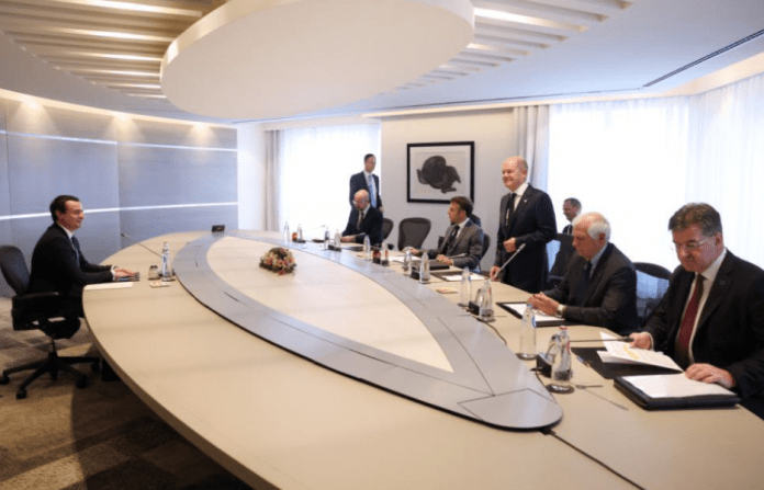 Kurti dhe Vuçiq u pritën veç e veç nga kancelari gjerman, Olaf Scholz, presidenti francez, Emmanuel Macron, kryeministrja italiane, Giorgia Meloni, si dhe përfaqësues të lartë të BE-së.