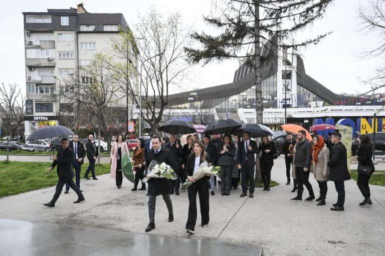 Kryeministri Kurti, së bashku me Ministren e Drejtësisë, Albulena Haxhiu, vendosi lule para memorialit, i cili përkujton mijëra gra dhe vajza, burra dhe djem, viktima e të mbijetuar të dhunës seksuale, që është përdorur si armë lufte nga forcat e okupatorit serb në luftën e fundit në Kosovë.