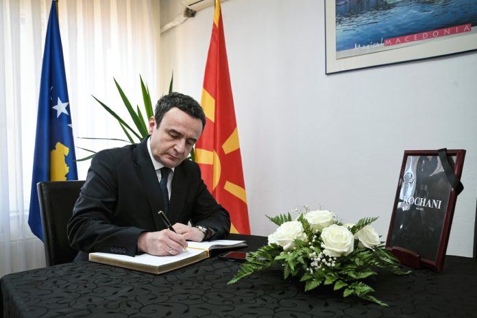 Kryeministri i Kosovës, Albin Kurti, ka vizituar sot Ambasadën e Maqedonisë së Veriut në Kosovë, ku shkroi në Librin e Ngushëllimeve dedikuar viktimave të tragjedisë në Koçan.