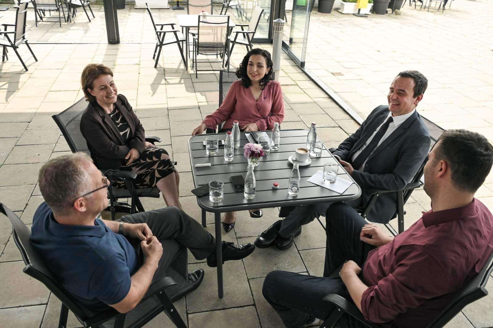 “Një pasdite e këndshme në Ballkonin e Hapur të Qeverisë, me Presidenten, Kryekuvendarin, zëvendëskryeministren Gërvalla dhe zëvendëskryeministrin Bislimi”, ka shkruar Kurti.