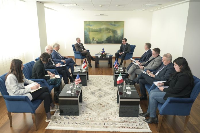 Kryeministri i Kosovës, Albin Kurti, ka takuar mbrëmë ambasadorët e vendeve të Quint-it (Gjermania, Italia, Franca, ShBA-ja dhe Britania) dhe shefin e BE-së në Kosovë, për të diskutuar mbi çështjen e valutave në vend.
