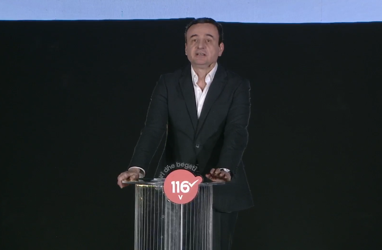Në tubimin elektoral në Ferizaj, kryetari i Lëvizjes Vetëvendosje (LVV), Albin Kurti, i cili në zgjedhjet e 28 dhjetorit kandidon për mandatin e tretë si kryeministër, ka numëruar projektet që qeveria e tij i ka realizuar deri më tash.