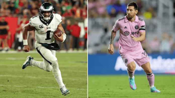 Në dyqanet zyrtare të veshjeve sportive, fanella rozë me numër 10 të Inter Miami me mbiemrin Messi nuk ndalet së shituri madje është shumë e vështirë të marrësh një kopje. Por, gjithsesi, lojtari më fitues në historinë e futbollit ka një rekord për të thyer: atë të yllit të NFL, Jalen Hurts. Qendërmbrojtësi i Philadelphia Eagles është ai që dominon shitjet në biznesin Fanatics, rrjeti numër një në tregun sportiv të Shteteve të Bashkuara.