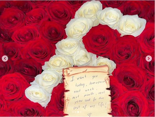 Në letër shkruhet: “Të dua ty sot, nesër, javën tjetër, muajin tjetër, vitin tjetër dhe për të gjithë jetën time”.