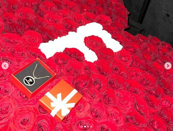 Ajo ka ndarë disa foto, ku shihet një buqetë gjigante me lule dhe një dhuratë.