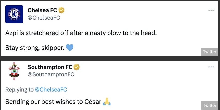 Chelsea dhe Southampton i kanë uruar shërim të shpejt futbollistit dhe presin lajme të reja për gjendjen e tij.
