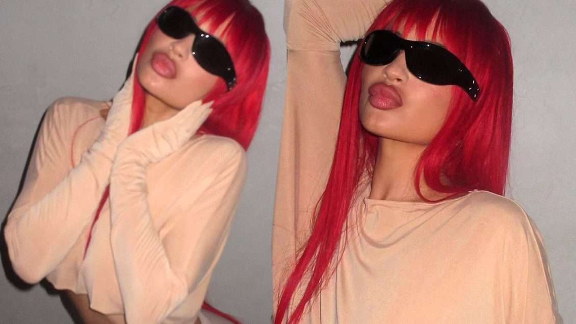 Ylli i Kardashians, 25 vjeçe, dukej e ‘zjarrtë’ një ndryshim në dukej teksa mbante një parukë të kuqe me balluke.