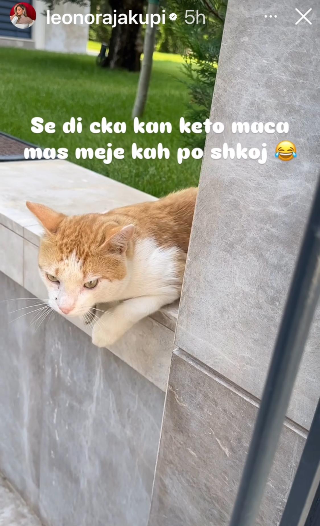 Në një video të publikuar në Instagram, Leonora ka ndarë një moment të çuditshëm e njëkohësisht komik, ku një mace e ndjek kudo që ajo shkon. “Se di çka kanë këto maca mas meje kah po shkoj 😂”, ka shkruar ajo mbi videon, duke e shoqëruar me një emoji qeshjeje.
