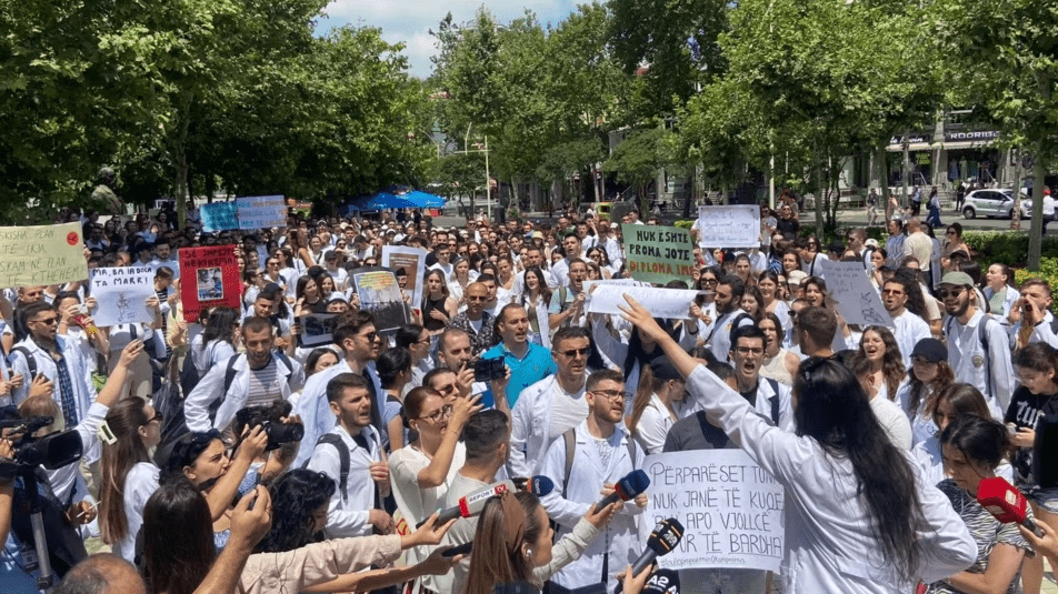 Studentët bojkotojnë mësimin dhe protestojnë kundër ligjit që i detyron mjekët e ardhshëm të punojnë në Shqipëri deri në 5 vjet pas përfundimit të studimeve – në të kundërtën, duhet të paguajnë një tarifë të caktuar.