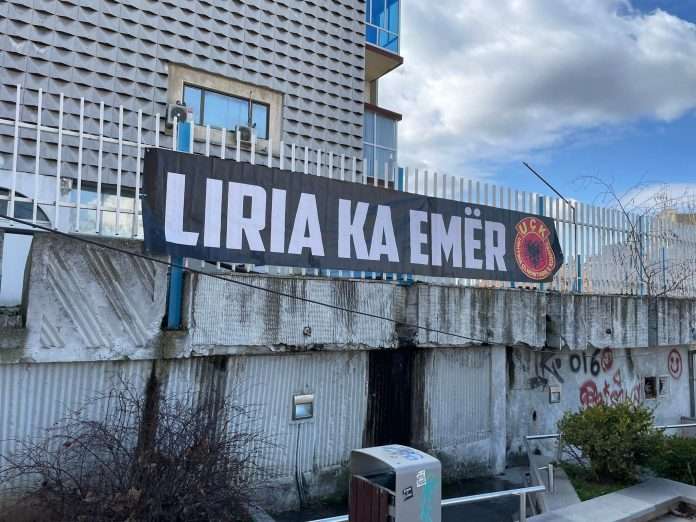 Para ndërtesë së Qeverisë së Kosovës, e cila aktualisht drejtohet nga kryeministri Albin Kurti, i cili vie nga radhët e Lëvizjes Vetëvendosje, është vendosur baneri ‘’Liria ka emër’’.