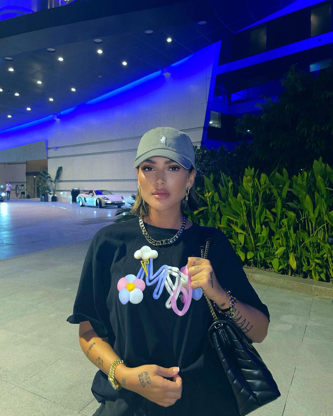 Kemi edhe imazhe tjera që ka publikuar ditën e djeshme veshur me bluzën e reperit Mozzik me ngjyrë të kaltër dhe të bardhë.