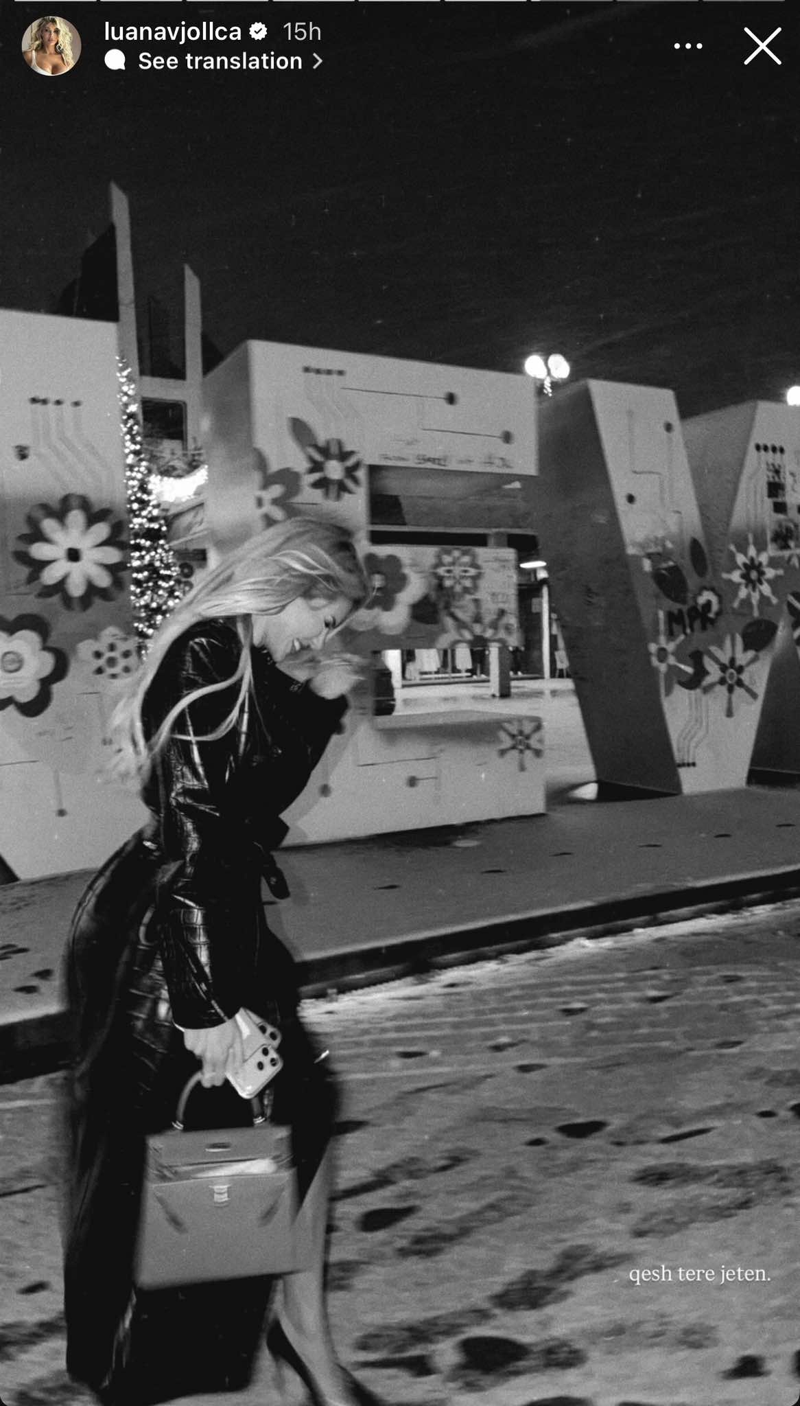 Së fundmi, moderatorja ka publikuar një fotografi të realizuar në orët e vona të natës në Prishtinë. Në imazh, Luana shihet duke ecur pranë monumentit New Born, shkruan “Kosovarja”.