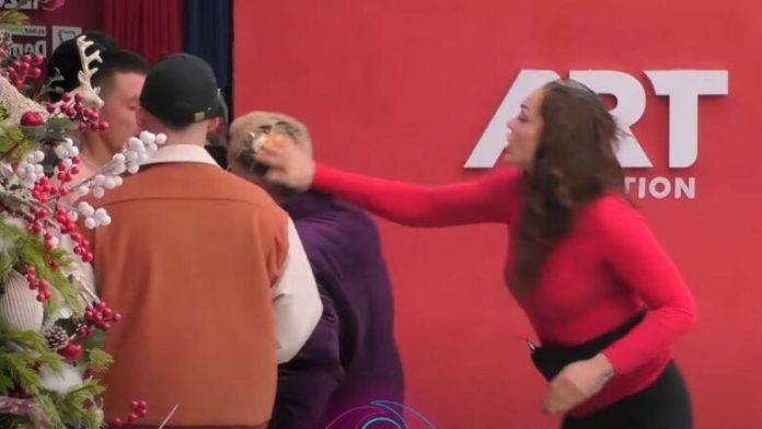 Drenusha reagoi me të qeshura, ndërkohë që Gjest përpiqej të gjuante edhe Xhenetën, por pa sukses.