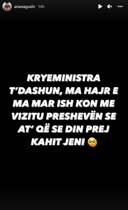 “Kryeministra t’dashun, ma hajr e ma mar ish kon me vizitu Preshevën se at’që se din prej kahit jeni”, ka qenë shkrimi i këngëtarit i icli më pas ka postuar edhe një imazh nga falja e namazit në gjamin e Preshevës.