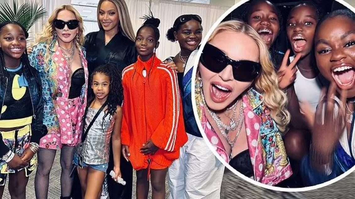 Madonna ndau fotot e bëra me vajzat e saj dhe Beyonce në prapaskenë e turneut të këngëtares në New Jersey.