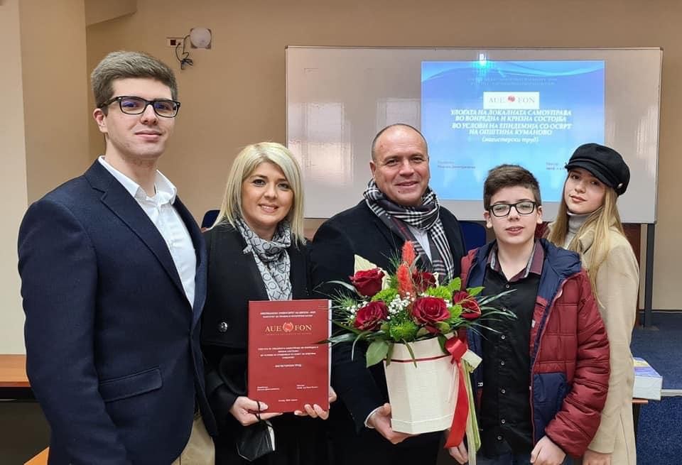 Kandidati Maksim Dimitrievski, sot (20.01.2021) në Fakultetin e Drejtësisë dhe Shkencave Politike, Universiteti Amerikan në Evropë FON, Shkup, mbrojti me sukses temën e magjistraturës me titull: “Roli i vetëqeverisjes lokale në krizat lokale kushtet e epidemisë duke iu referuar Komunës së Kumanovës “ Komisioni në përbërje, Prof. Dr. Nazmi Maliqi – Kryetarë, Prof. Dr. Nano Ruzhin – mentor dhe Prof. Dr. Marjan Nikolovski – anëtar, sekretar i komisionit Ass. Mr. Imrane Ramadani Morina.