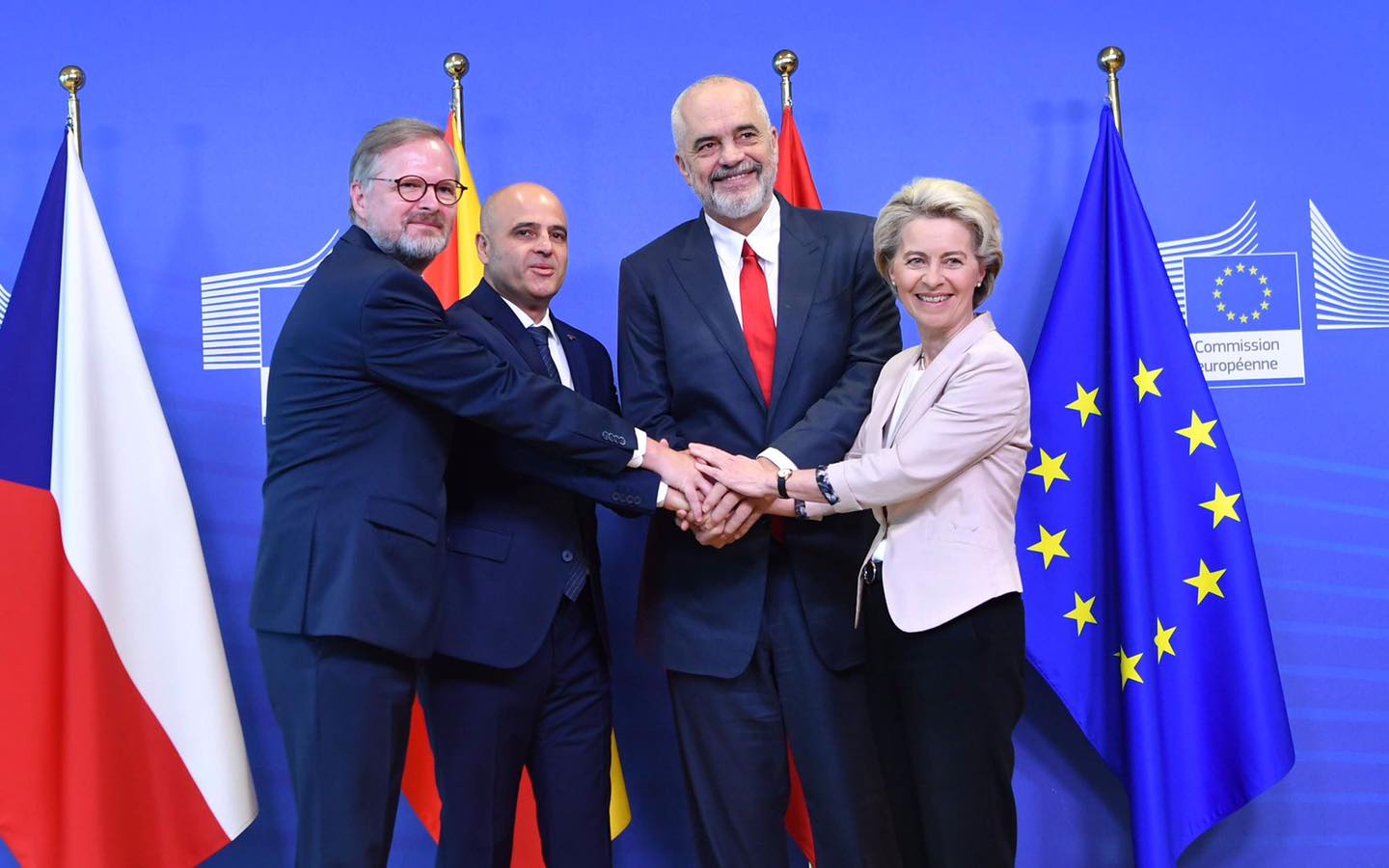 Shqipëria mori statusin e kandidatit më 2014 dhe që nga viti 2018 ka pasur rekomandim për nisjen e negociatave. Por, Tirana u fut në paketën e njëjtë me Shkupin, dhe iu desh të priste që Maqedonia e Veriut dhe Bullgaria të arrinin pajtim për dallimet./REL