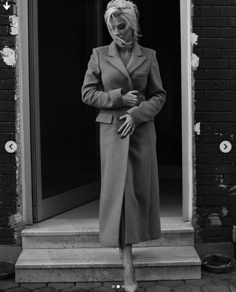 Njësoj u shfaq edhe në fotografitë e reja, ku erdhi e veshur me një pallto të gjatë, të kombinuar me një palë taka.