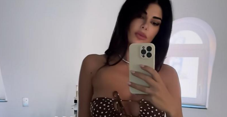 Angela u kujdes të ekspozonte linjat tejet joshëse të trupit nga pushimet në Capri të Italisë e veshur me bikini të kafe me pika të bardha.
