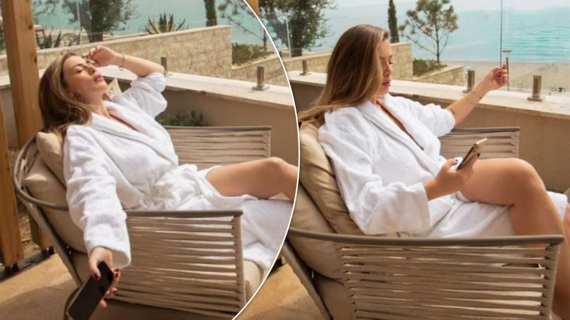 Në foto që ndau me fansat në Instagram, Gixhari shihet e veshur me një robdishan teksa relaksohej pranë bregdetit.