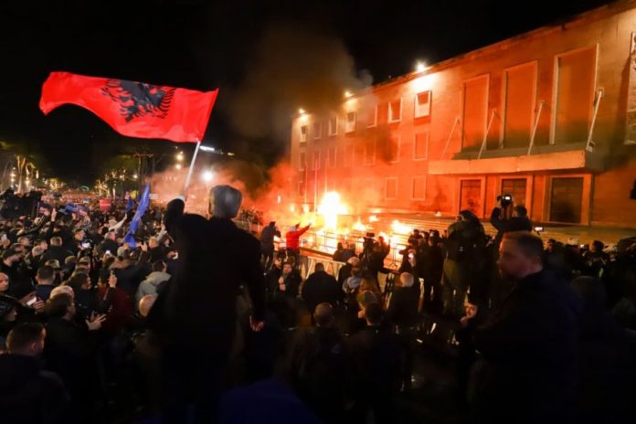 Raportohet se protestuesit janë përpjekur të hedhin bomba molotov ndaj një ndërtese qeveritare. Një turmë njerëzish që po protestonin në kryeqytetin shqiptar, Tiranë, hodhën kokteje molotov dhe fishekzjarrë drejt zyrës të kryeministrit Edi Rama, raportojnë mediat lokale.