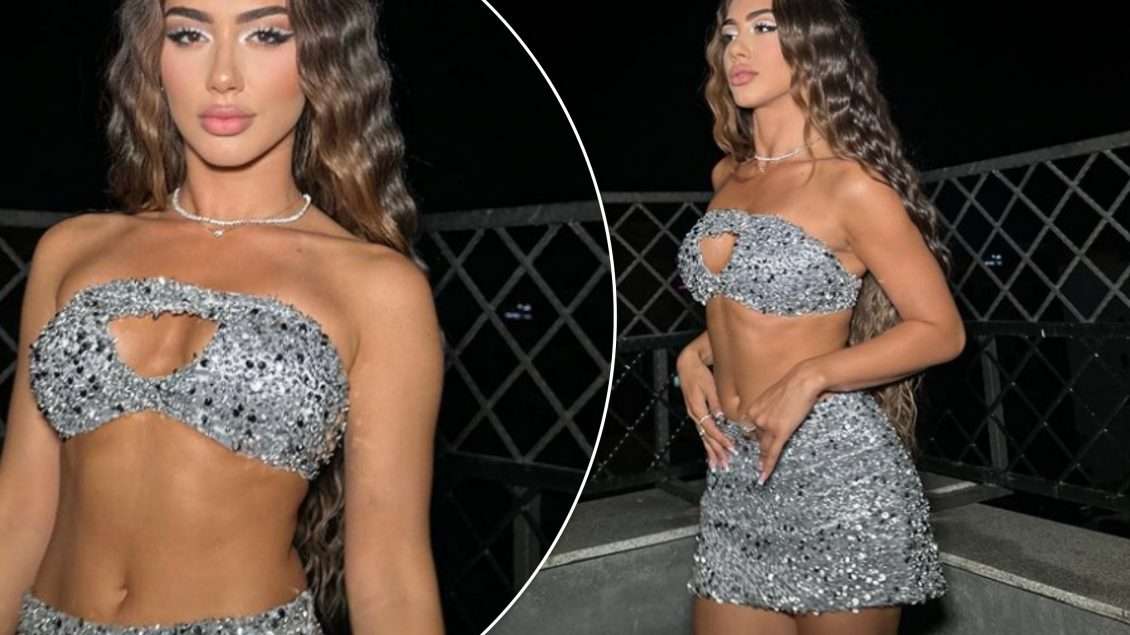 Ajo vjen e veshur me një kostum dypjesësh ngjyrë hiri, i cili është i zbukuruar me disa gurë shkëlqyes.