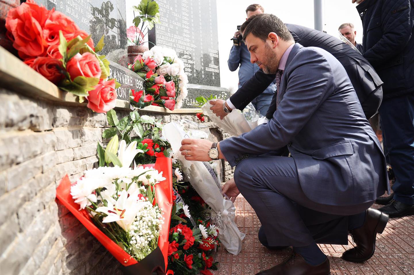 “Sot, ne u përkulëm para vendit ku prehen viktimat e kësaj masakre, me dhembje dhe nderim, duke kujtuar shpirtin e tyre qëndrestar, përballë makinerisë vrastare serbe”.