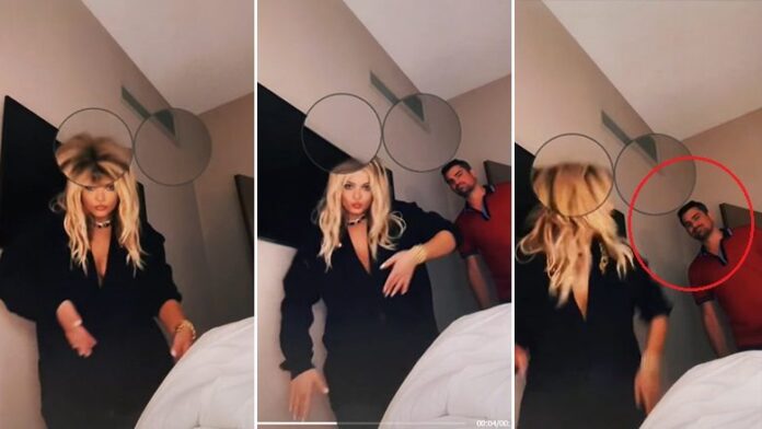 E teksa kishte lëshuar kamerën për të xhiruar veten në dhomën e fjetjes, në një moment mund të shihet se si i dashuri i saj, regjisori Keyan Safyari, afrohet për të parë se çfarë po bën ajo. Ndërsa e dashura e tij kërcen dhe dridhet para kamerës, regjisori amerikan tund kokën në shenj habie dhe këngëtarja shqiptare qesh kur e kupton se ai po e shikon atë.