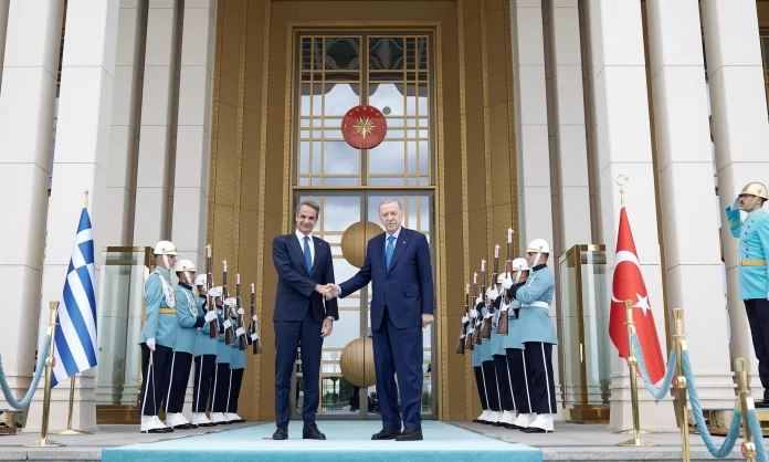Kyriakos Mitsotakis është pritur në aeroport nga ministri i Jashtëm i Turqisë, dhe më pas nga Rexhep Tayyip Erdogan në Pallatin Presidencial në Ankara, në takimin e 4 të tyre brenda 12 muajve, që thuhet se ishte më i ngrohti .