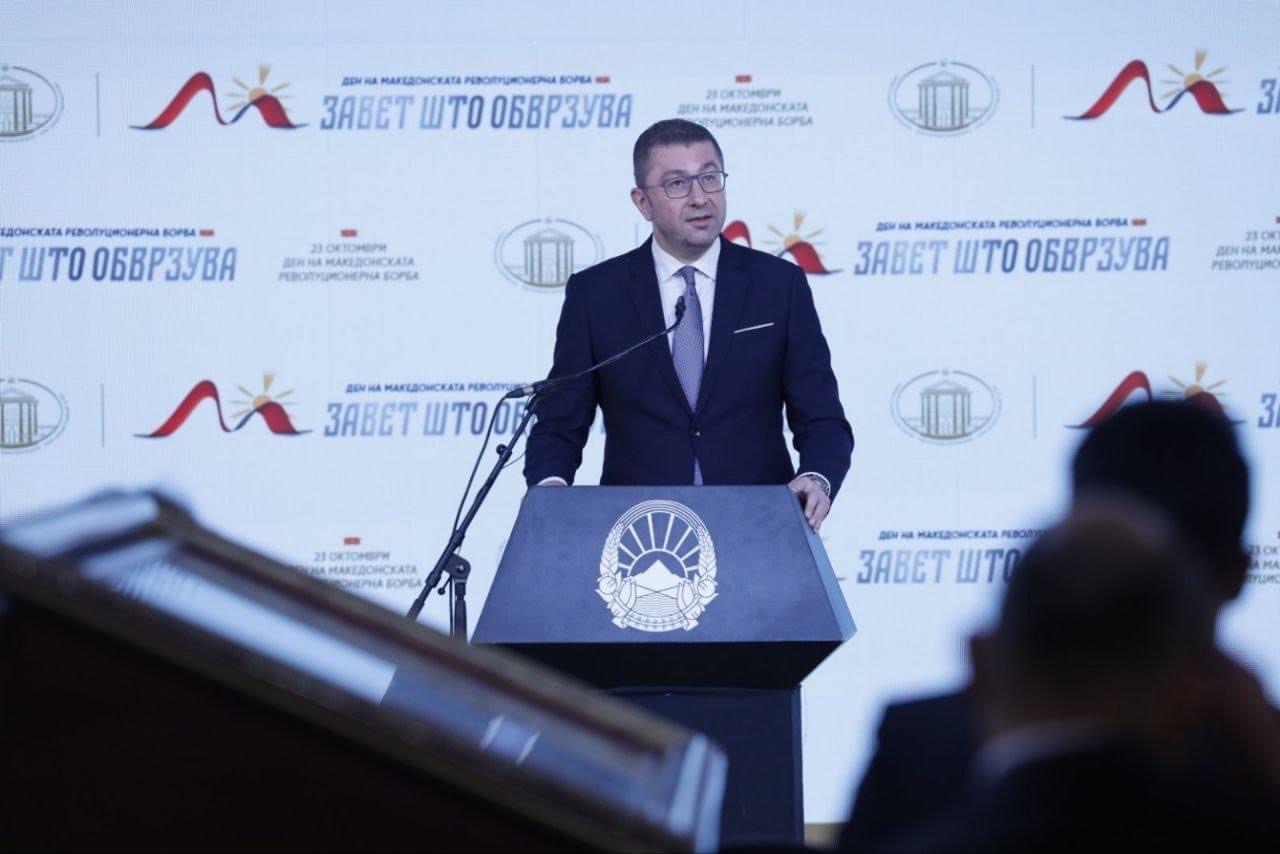 Kryeministri i Maqedonisë së Veriut, Hristijan Mickoski sot në fjalimin e shënimit të 23 Tetorit – Ditës së Luftës Revolucionare Maqedonase, i bëri thirrje opozitës të bashkohet.
