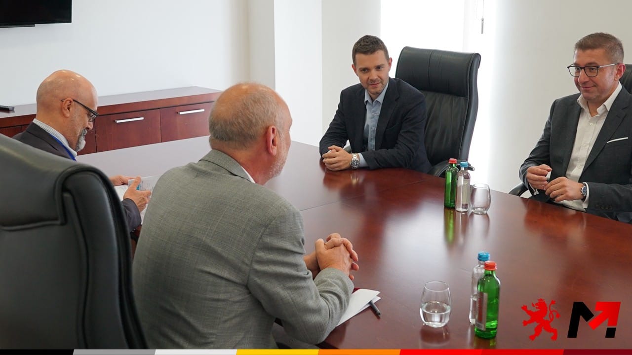 Kryetari i VMRO-DPMNE-së Hristijan Mickoski së bashku me nënkryetarin Timço Mucunski realizuan takim me ambasadorin e BE-së në Maqedoni, David Geer.