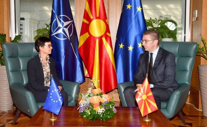 Kryeministri i Maqedonisë së Veriut, Hristijan Mickoski njofton se sot ka realizuar takim me Komisioneren Evropiane për Zgjerim dhe Politikë të Fqinjësisë së Mirë, Marta Kos, e cila ndodhet në një vizitë dy-ditore në vend me rastin e Samitit të Liderëve të Bashkimit Evropian dhe Ballkanit Perëndimor.